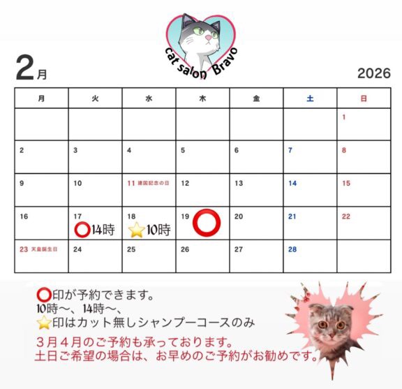 3月4月のご予約も承っております。